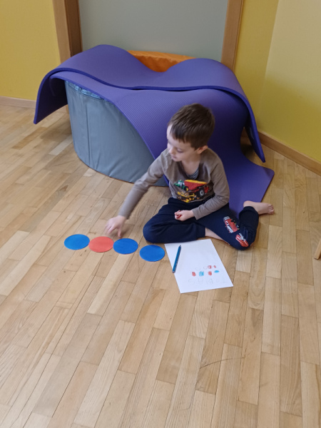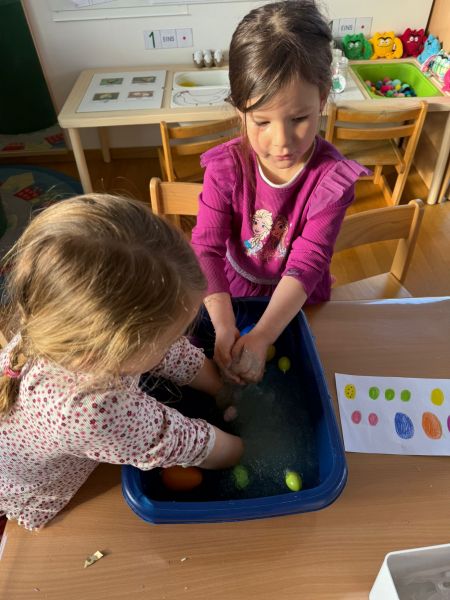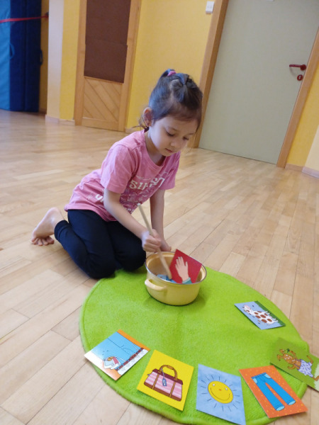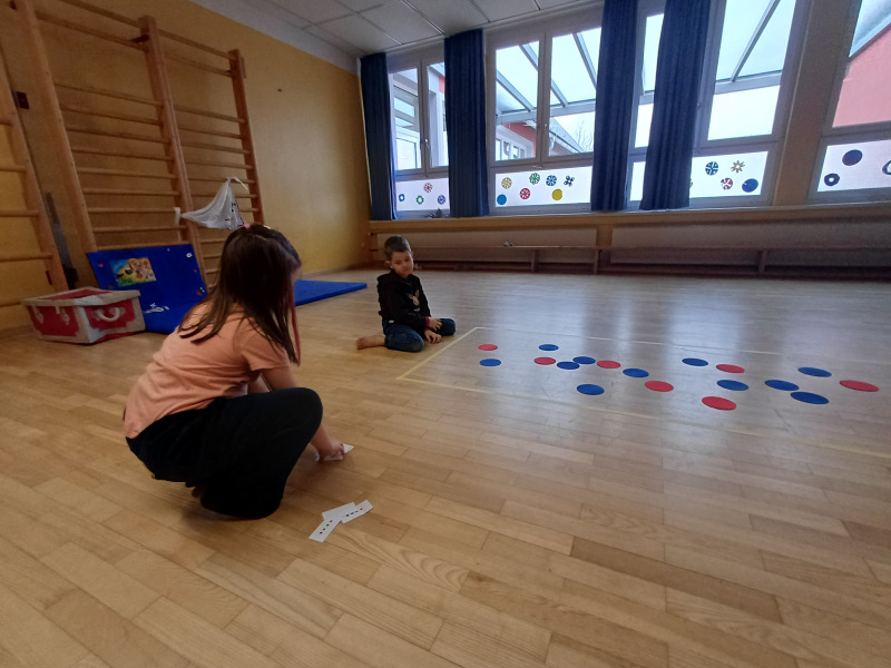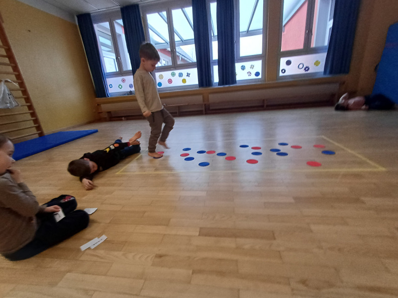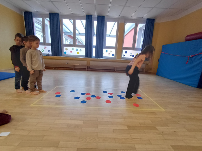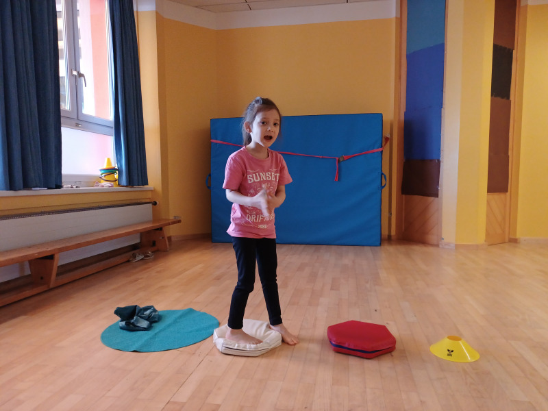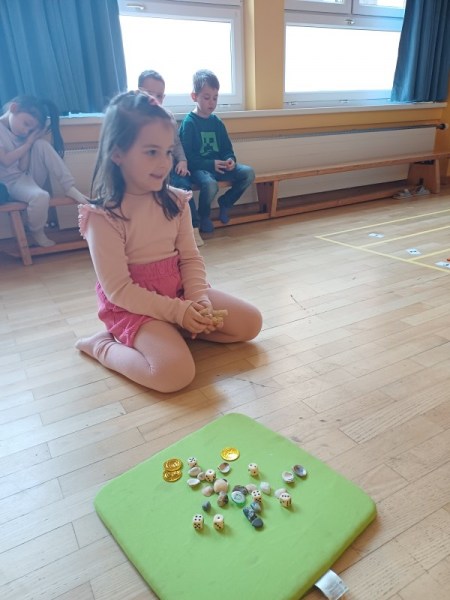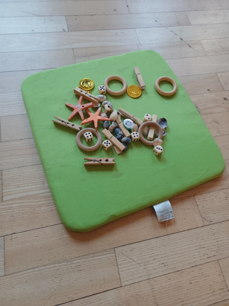Piratenreise mit Conny & Chiara- 4.Insel „Rhythmus & Muster“, 2.Tag: Am zweiten Tag auf der Insel des Rhythmus und der Muster folgt ihr den Trommelzeichen der Inselbewohner, die euch damit den Weg zu ihrem Dorf im Dschungel weisen wollen. Schon bald gelangt ihr an einen See, der nur mit Hilfe verzauberter Steine überquert werden kann… . Die Schwerpunkte der Stunde liegen einerseits auf einer Förderung der auditiven und visuellen Merkfähigkeit und andererseits auf verschiedenen mathematischen Grundkompetenzen. Neben dem Analysieren von Rhythmen und Mustern, bekommen die Kinder beim „Steine umdrehen“ eine richtige Forscheraufgabe.
