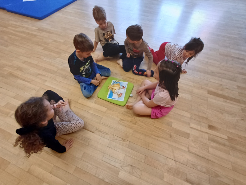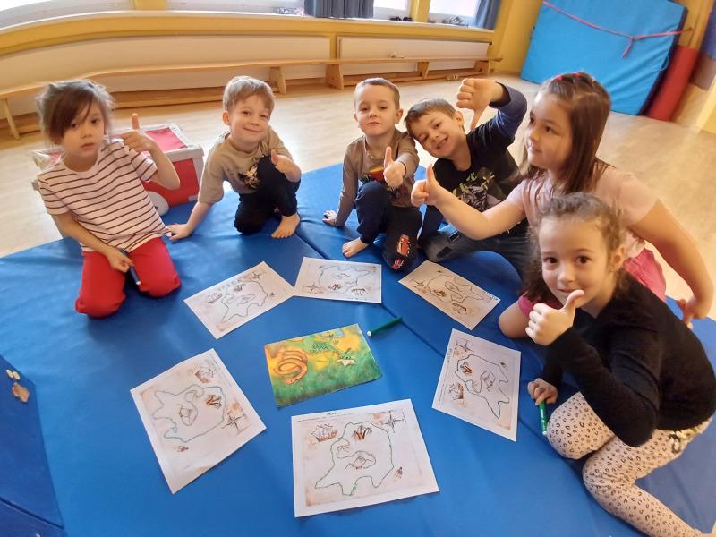 Piratenreise mit Conny & Chiara- 5.Insel „Reime & Sprachspielereien“, 4.Tag- Schatzstunde: Schatzstunde! Die Piraten haben den Vulkan des Lauschdrachen fast erreicht. Nachdem sie sich den richtigen Weg durch ein Labyrinth gesucht haben und tanzende Schmetterlinge gesehen haben, gelangen sie zu den „Summenden Bergen“. Von dort ist es zum Vulkan nicht mehr weit! In der letzten Stunde auf der Insel der Reime und Sprachspielereien wagst du dich mit deinen Kindern noch weiter vor in die phonologische Bewusstheit. Mit den Spielen „Tanz der Schmetterlinge“ und „Die summenden Berge“ wird die für das Lesen- und Schreibenlernen so wichtige Lautsynthese (= Zusammenschleifen einzelner Laute) angebahnt.