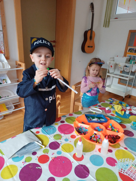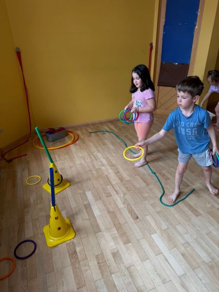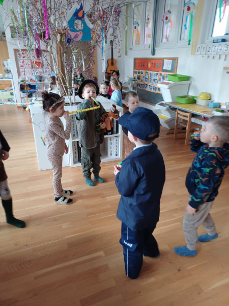 Piratenreise mit Conny & Chiara- 4.Insel „Rhythmus und Muster“, 1.Tag: Auf dieser Insel mussten wir feststellen, dass es auf der Insel schon seit Wochen nicht geregnet hatte, die Ernte in Gefahr ist und die Bewohner richtig verzweifelt sind. Zum Glück kannten wir einen Regenzauber! Die Piraten „bauten“ Regenmacher, das forderte Ausdauer, Konzentration, eine gute Auge-Hand-Koordination und Kraftdosierung. Auch verschiedene sozial-emotionale Kompetenzen wurden gefördert.