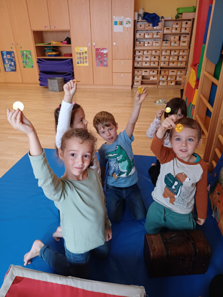 Piratenreise mit Conny & Chiara- 2.Insel, 4.Tag- Sinne: Am vierten Tag auf der Insel der Sinne dreht sich alles um`s Fühlen. Wir Piraten halfen dem Sinne-Zwerg dabei, vergrabene Gegenstände wieder auszubuddeln und schließlich mussten wir die Geheimzeichen eines Adlers, der den Schatz bewachte, erspüren.