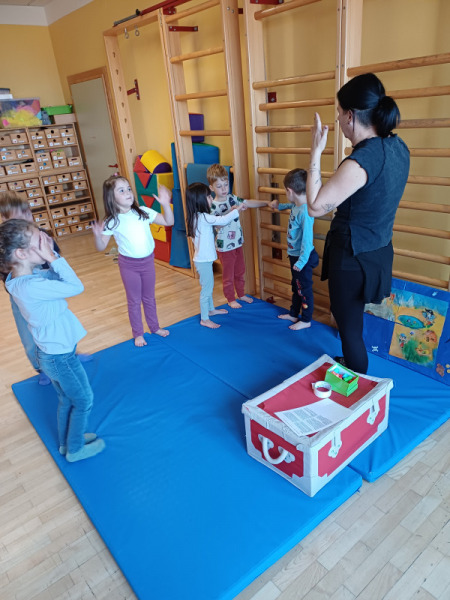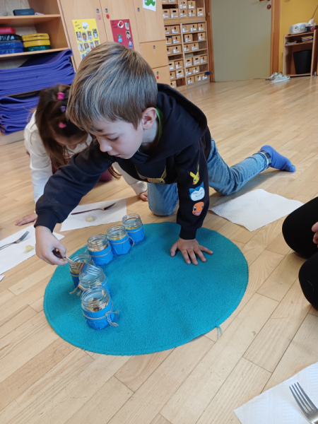 Piratenreise mit Conny & Chiara- 2.Insel, 3.Tag-Sinne: Heute wurden wir vom Sinneszwerg zum Essen eingeladen. Doch nicht nur die Zunge wurde gebraucht- dass wie auch die Nase für`s Schmecken benötigen, konnten wir Piraten heute erfahren.
